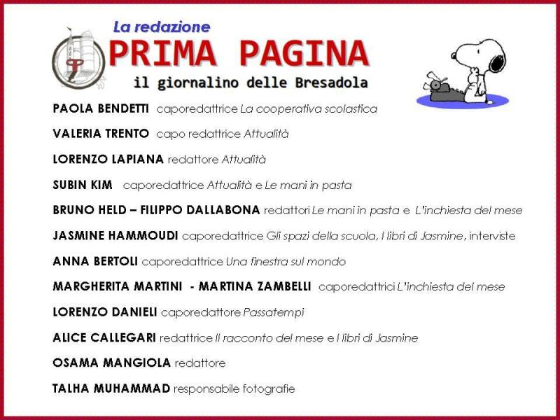 Il giornalino è realizzato presso la scuola Bresadola nell'ambito del progetto di Servizio Civile “6 mesi in + per ES.SER.CI”