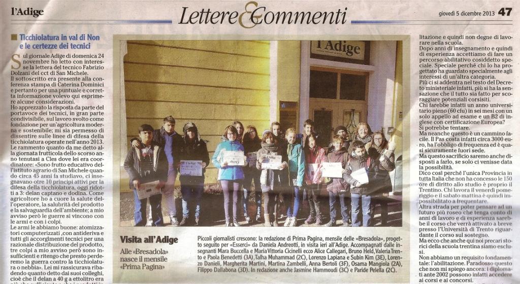 PRIMA PAGINA: PROGETTO COMPLETO - la redazione di PRIMA PAGINA visita il quotidiano L'Adige - 4 dicembre 2013