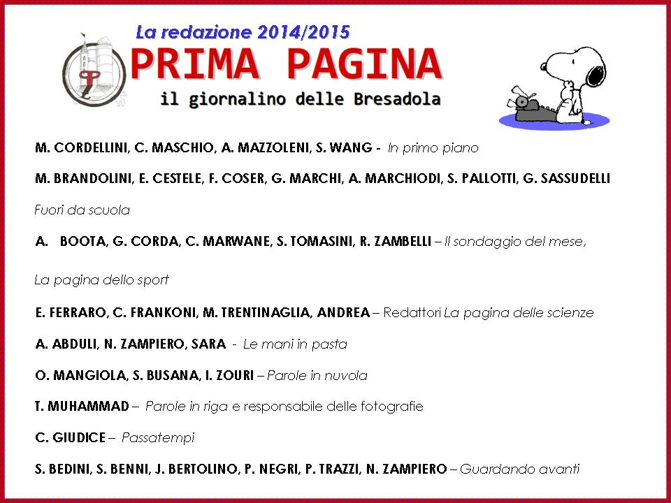 La pubblicazione di PRIMA PAGINA è proseguita nell'a.s. 2014/2015 con cadenza bimestrale