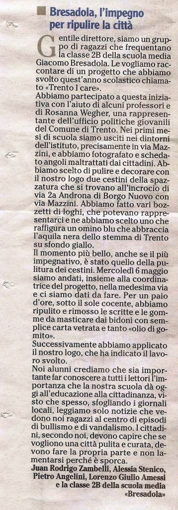 VITA TRENTINA - IL TRENTINO1 - IL TRENTINO2 - LETTERA DELLA 2B AL DIRETTOE DELL'ADIGE