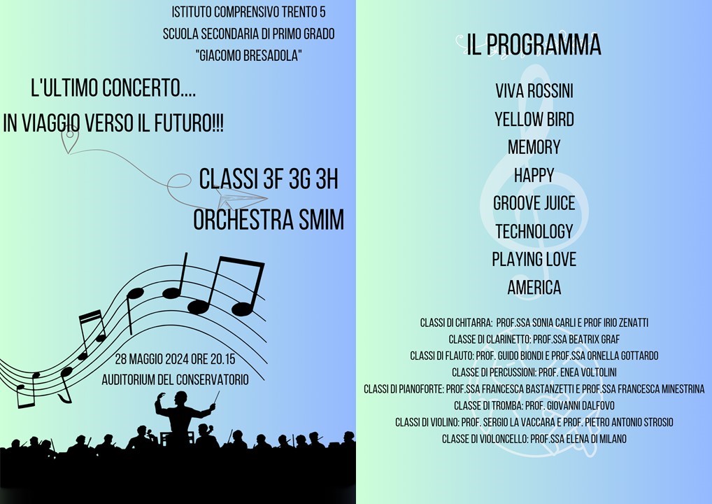 Martedì 28 maggio 2024 - ore 20.15 Concerto finale orchestra classi terze SMIM, c/o Auditorium del Conservatorio