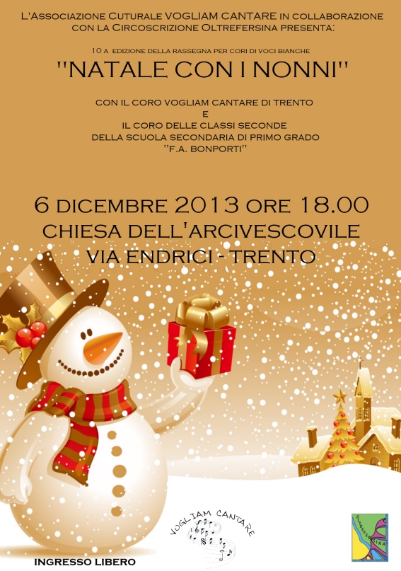 VENERDI' 14 DICEMBRE 2012 ore 17.30 presso la Chiesa di S. Rocco, Villazzano 3 (TN), nell'ambito della Rassegna corale Natale con i nonni