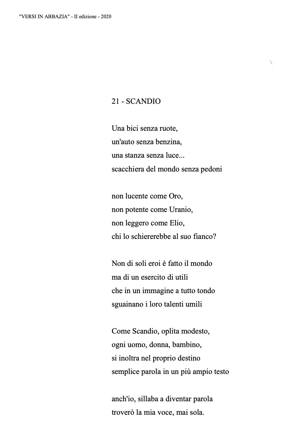 Il componimento, dal titolo «SCANDIO», opera di ELENA TAZZARI è inoltre risultato PRIMO classificato nella categoria "SCUOLA SECONDARIA di 1° GRADO".